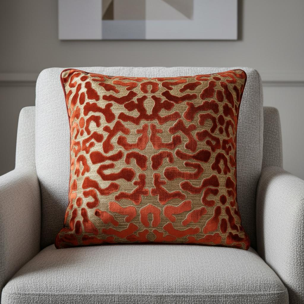 Die Farben erinnern an das Licht sizilianischer Sonnenuntergänge und die prunkvollen Fassaden alter Städte. Ein Kissen, das Geschichte, Emotion und Stil vereint – ein starkes Statement für Menschen mit Gespür für Details.