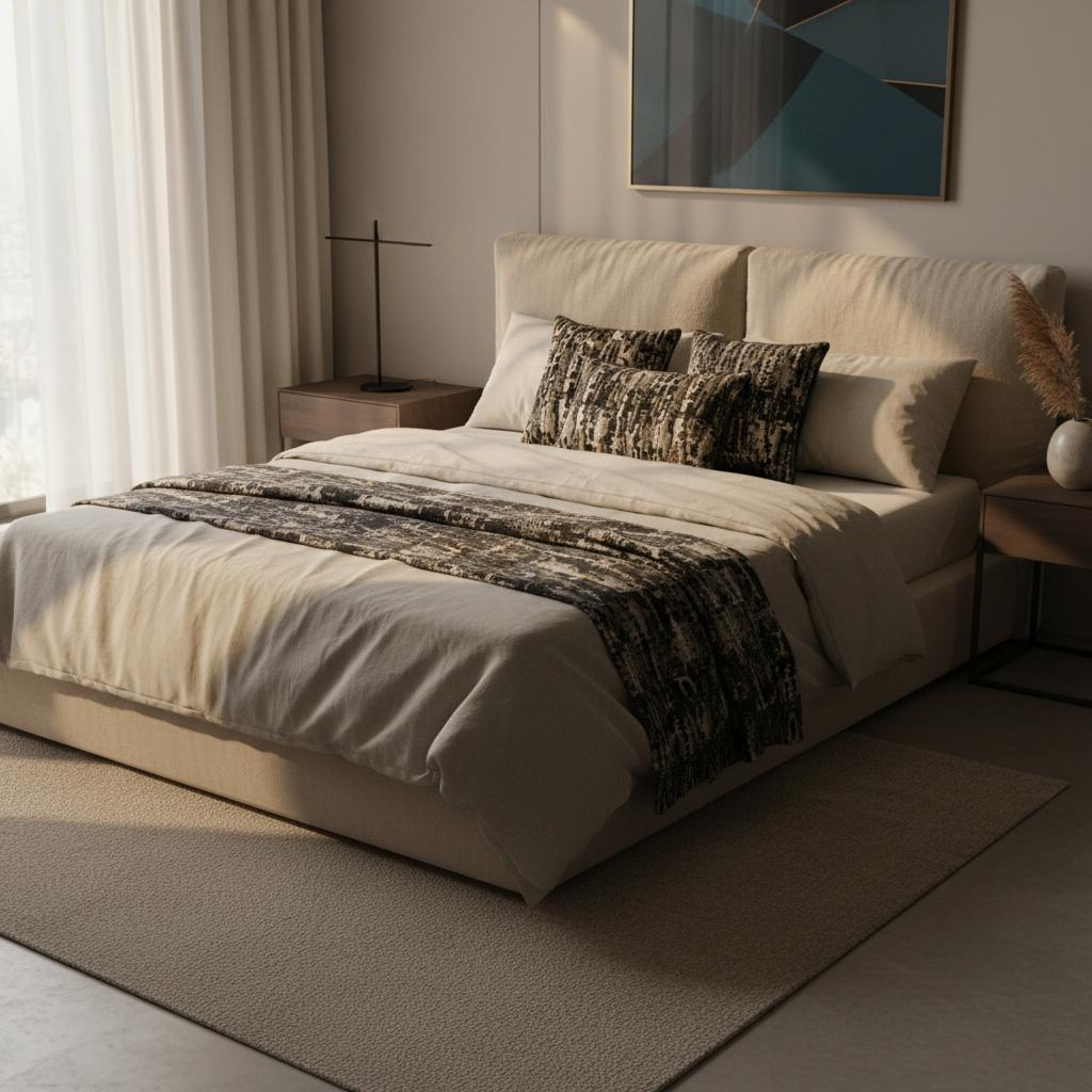 Dormitorio minimalista: Como complemento armonioso para ropa de cama en marfil, negro o antracita – un acento tranquilo con textura.