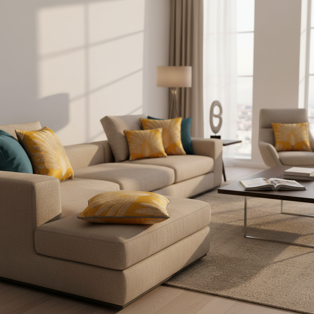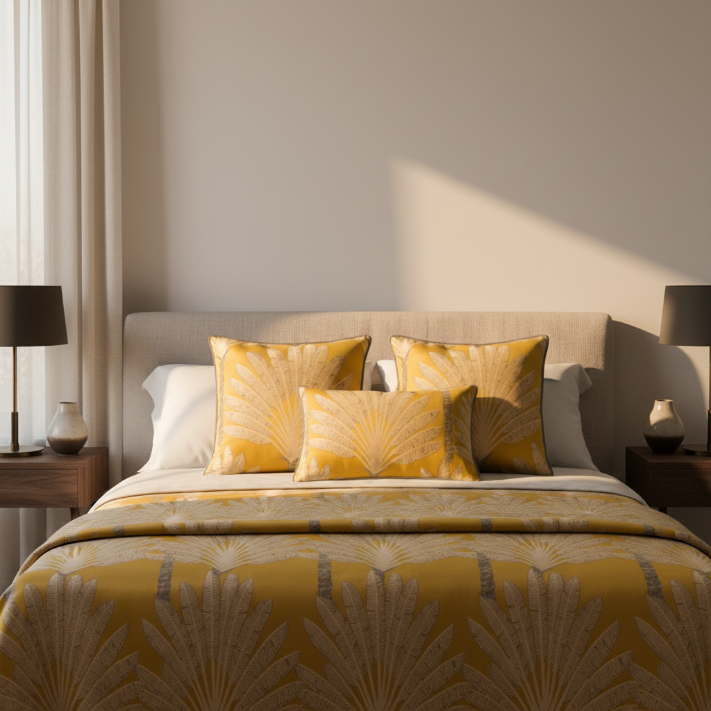 Set de coussins déco « LEIRIA 1 & 2 » – Accents chauds en ocre & beige