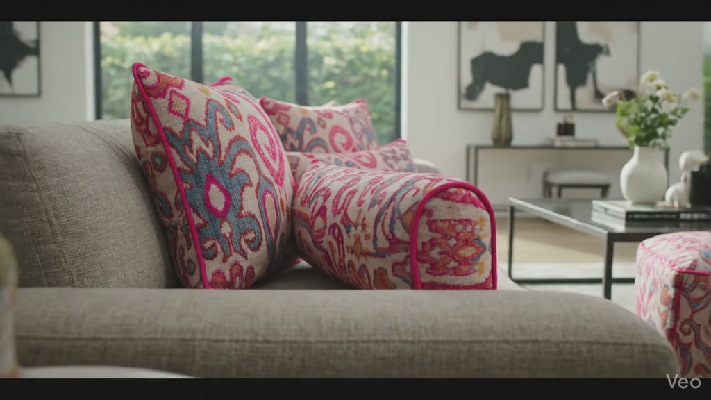 Le set de coussins « SAN JUAN 7 & 8 » symbolise la joie de vivre, l'expressivité et une touche d'extravagance. L'harmonie entre un beige neutre et une explosion de couleurs fait de ce duo un véritable accroche-regard – élégant, moderne, avec une pincée de cosmopolitisme.