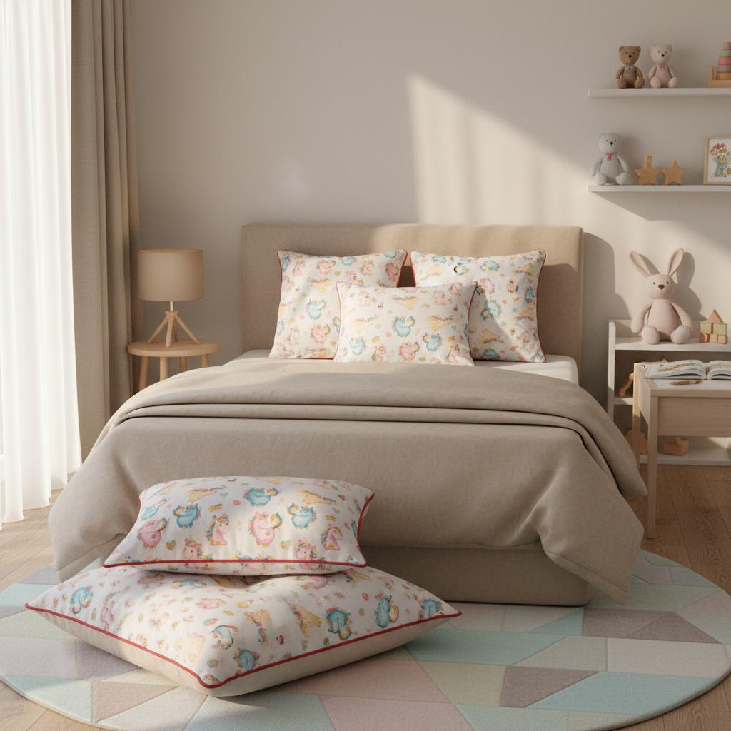 Duik in de liefdevol ontworpen wereld van „DEBORA 1 & 2“ – een kussenset die met zachte rozetinten en vrolijk multicolor-ontwerp de fantasie prikkelt en zorgt voor geborgenheid in de kinderkamer.