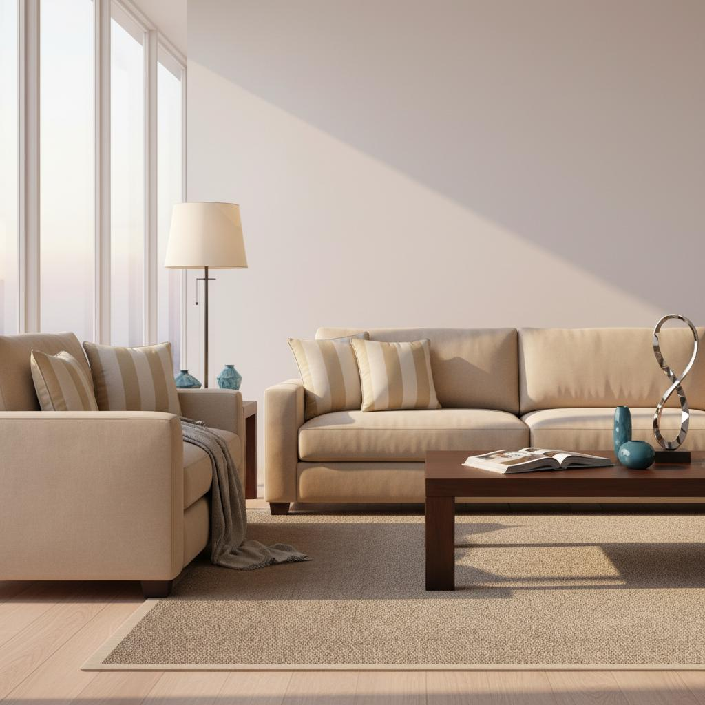 | Scandi Style ❄️ | Sanftes Beige betont helle Holzfarben & klare Linien | Perfekt auf hellgrauen Sofas & minimalistischen Texturen |