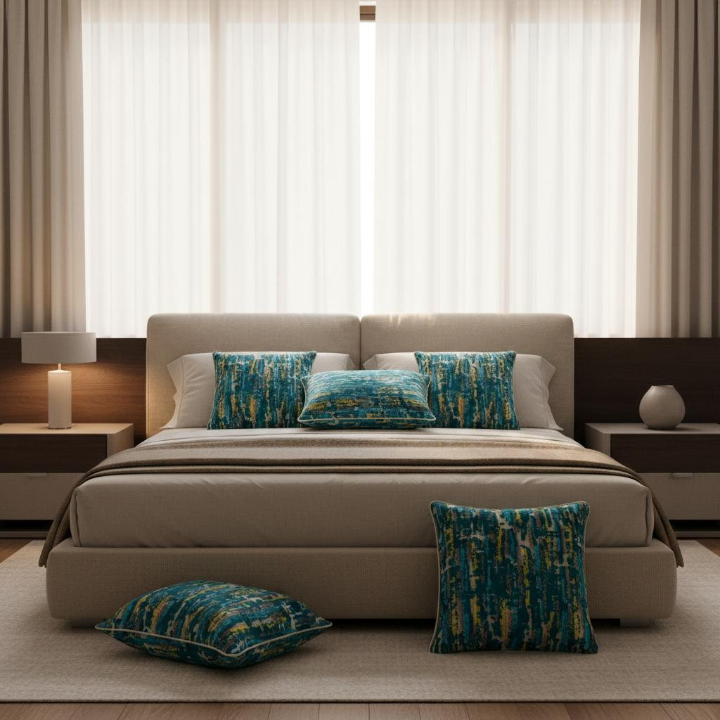 Tauche ein in die faszinierende Farbwelt von Petrol, Grau, Natur und Ocker – vereint in einem stilvollen DekoKissen-Set, das sofort Charakter verleiht. Mit einer Mischung aus modernem Understatement und mediterraner Wärme wirst Du zum Kurator Deines eigenen Wohnstils.