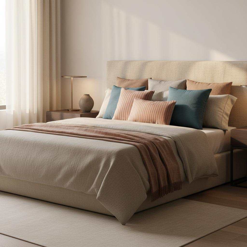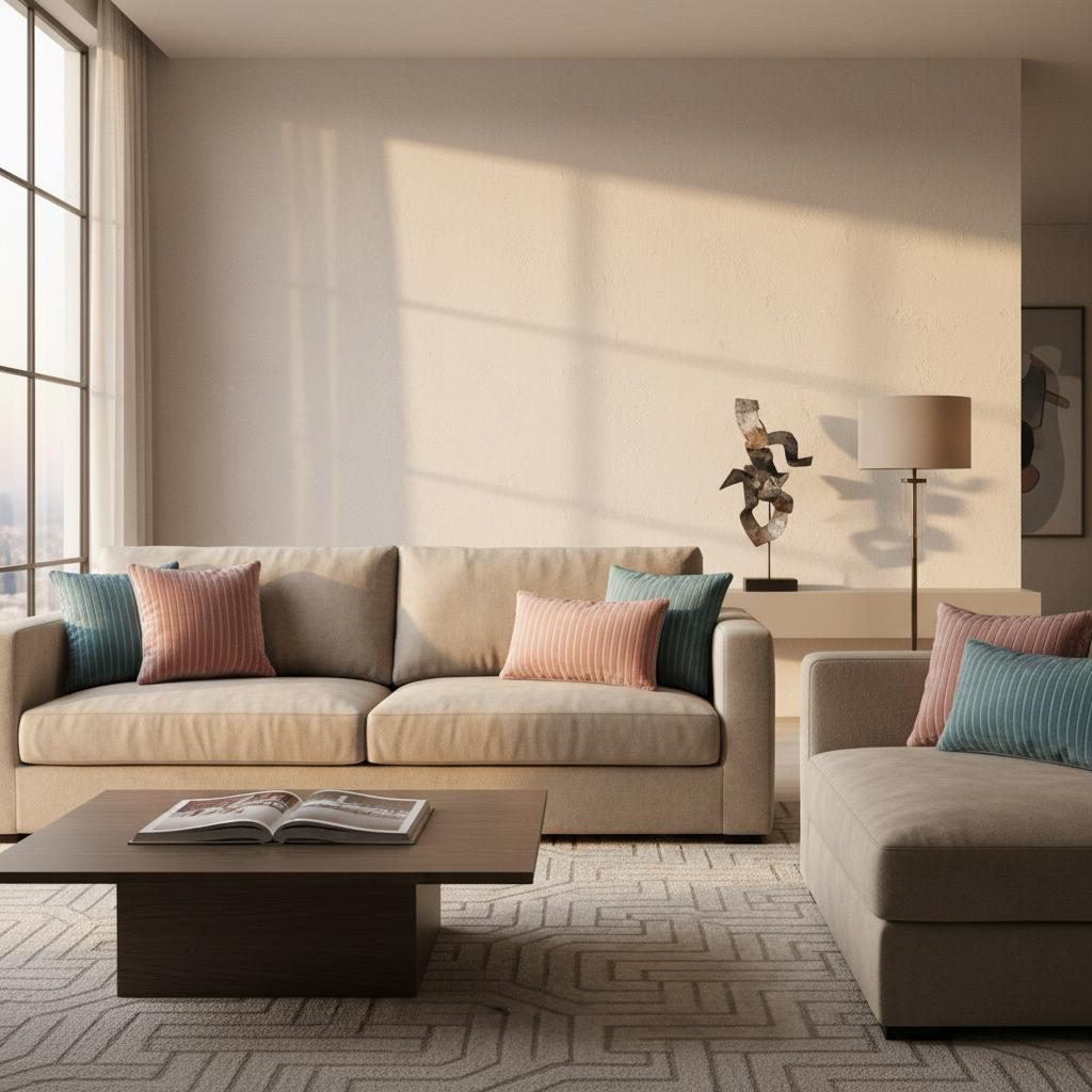 Die Farbkombination aus zartem Rosa und gedämpftem Grau erinnert an einen Sonnenuntergang über Pariser Dächern – ein Anblick, der nie aus der Mode kommt. Das Set passt ideal zum Scandi Chic, Romantic Modern oder Urban Soft Style. Es verleiht dem Raum einen Hauch Poesie, ohne je kitschig zu wirken.